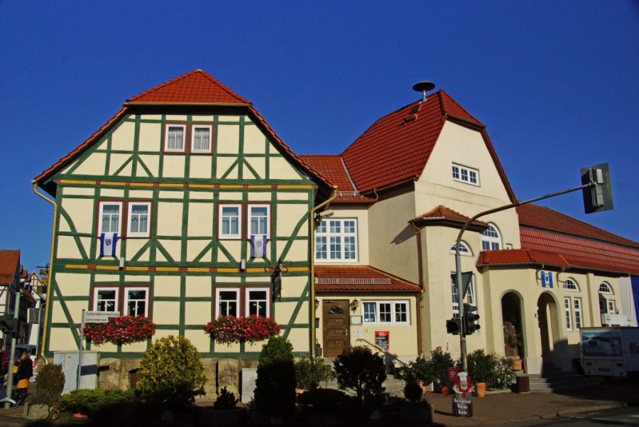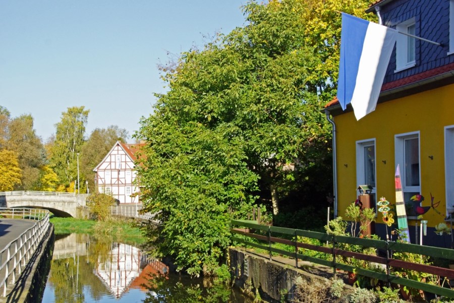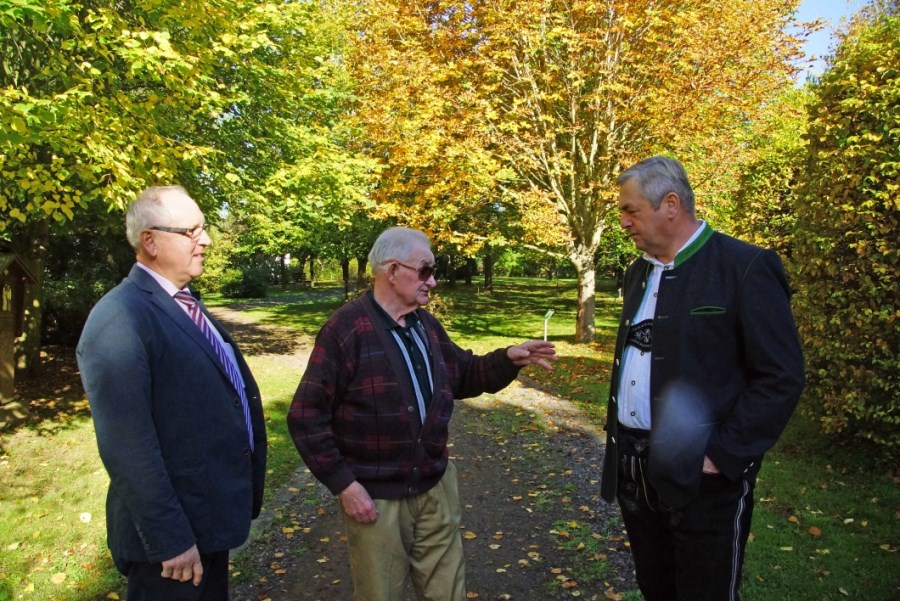 Ernst und ich erhielten von Otto Kesting anschließend eine ausgiebige Führung durch den Ort Gernrode. Wir erfuhren so einiges über die schönsten Plätze des Ortes, wie die alte Mühle, das Gemeindehaus, den berühmten Sohn des Ortes und Erfinder des Kinographen, Heinrich Erneman, was es mit dem Untergang des Wipperpfeils auf sich hatte und dass ein verwegener Flussreisender direkt hier von der Wipper, über die Unstrut und Saale bis hinein in die Elbe als "Flussreisender" mit seinem Boot nach gut 700 KM die Stadt Hamburg erreichte. Weiter ging es zur Volksschule und der neuen Turnhalle, dann entlang der Wipper, vorbei an der gegenüberliegenden Seebothmühle wieder den Sandberg hinauf zur Straße der Einheit. Ganz am Ortsende findet sich eine wunderschöne Kreuzweganlage, die mehr ein botansicher Garten zu sein scheint. Über 120 Bäume und Sträucher säumen hier den geschwungenen Kreuzweg, wobei alle Gewächse fein säuberlich mit Tafel beschrieben sind. Parkbänke laden zum Verweilen, Meditieren und Genießen von Gottes Schöpfung ein. Vorbei am ehemaligen LPG-Gelände, wo gerade die Festwägen für den Kirmesumzug vorbereitet werden, ging es zurück zum Mittagessen. Otto hat übrigens in seinem Garten genau am 3. Oktober 1990 eine Eiche zur deutschen Einheit gepflanzt - mittlerweile ein prächtiger Baum.