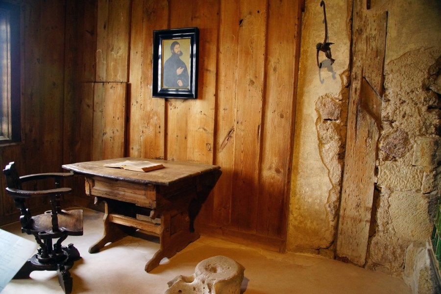Nach der Taufkirche Luthers ging es sogleich in sein Geburtshaus, das heute als Museum dient. Es ist allerding ein Nachbau, das Originalhaus fiel einem Stadtbrand zum Opfer. Hier erfährt man an Hand zahlreicher Exponate einiges über die Vorfahren Luthers (sein Vater stammt aus Möhra, das wir bereits bei der Anfahrt gesehen haben), über das Leben in der Grafschaft Mansleben, das geprägt war durch durch einen bescheidenen Wohlstand der Lutherfamilie aus dem Kupferbergbau und der Bauerntätigkeit. Es wird einiges aus Luthers Leben geschildert, wie die Beziehung zu seinem Vater nach dem Eintriff in das Augustinerstift, die Bedeutung der Taufe, seine Ehe mit Katharina von Bora (ehemalige Zisterziensernonne) und zahlreiche Kunstgegenstände. Interessant ist auch der Nachbau der alten Wohnstadt mit Kindertruhe.