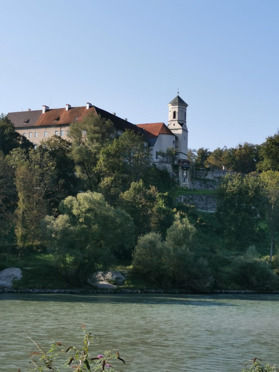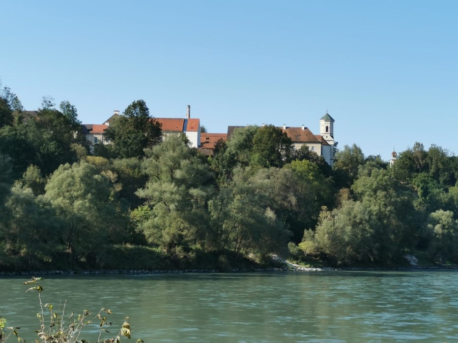 Der Uferstraße folgen wir nun lange Zeit bis auf der gegenüberliegenden Flussseite das Kloster Raitenhaslach grüßt.