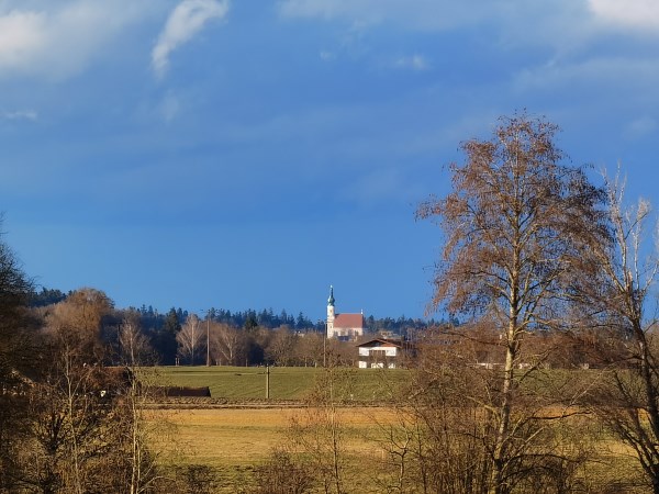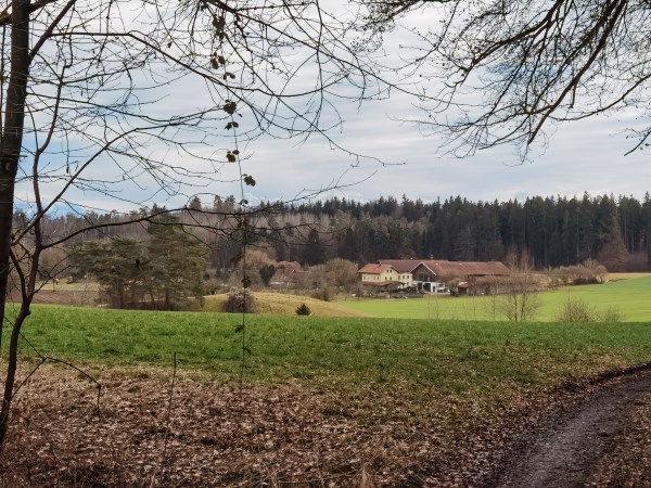Nach der Brotzeit geht´s links weiter in Richtung Kayer Industriegebiet. Man überquert die Straße und folgt einem Feldweg der gegenüber weitergeht. Links vorbei am Autohaus Mangs! Der Weg führt dann weiter zum Einödhof Holzen und weiter nach Pfaffing. In Pfaffing geht es am alten Brunnhäusl links und am alten Postgut vorbei in Richtung Hüttenthalerfeld. Von hier aus, dann wieder runter in die Stadt zum Ausgangspunkt.