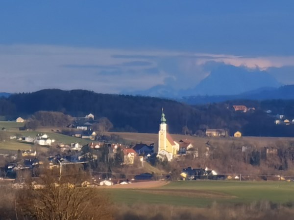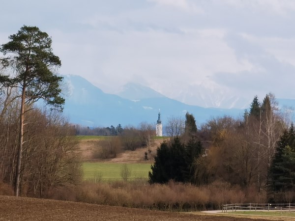 Hier biegt man an der Kreuzung links ab in Richtung zum Steinerbauern (Wallmoning 1) weiter geht’s am Schotterweg in Richtung Wald und durch den Wald durch bis man schon die Kirche von Lanzing sieht.