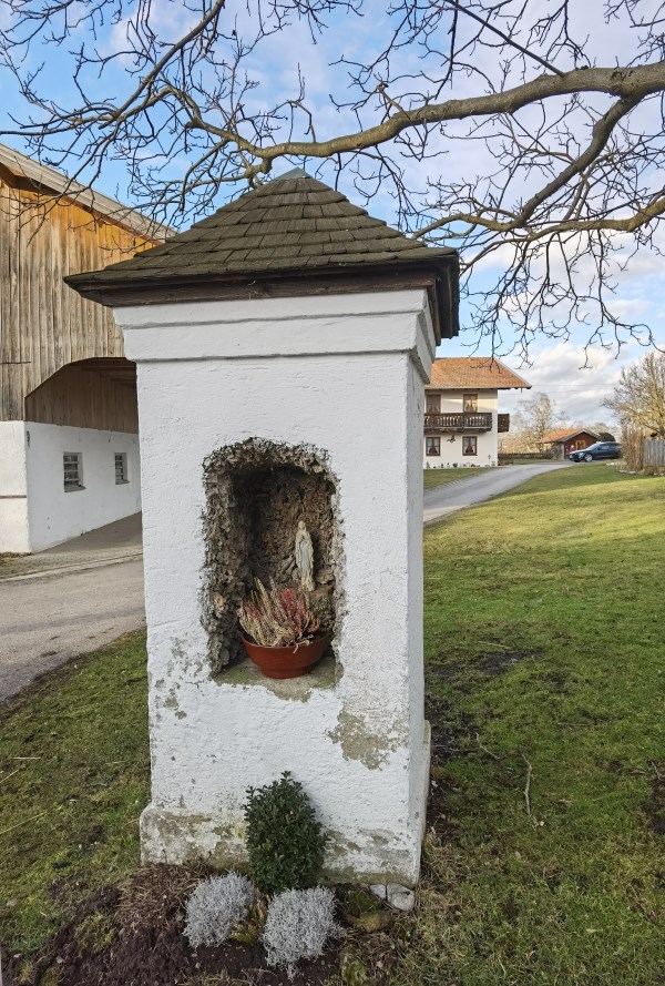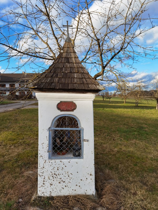 In Lanzing angekommen kann man die wunderschöne, spätgotische Filialkirche besichtigen. Die Kirche ist meistens verschlossen, es gibt aber hinten am Turm, auf der linken Seite ein Fenster, wo man schön ins Innere schauen kann.