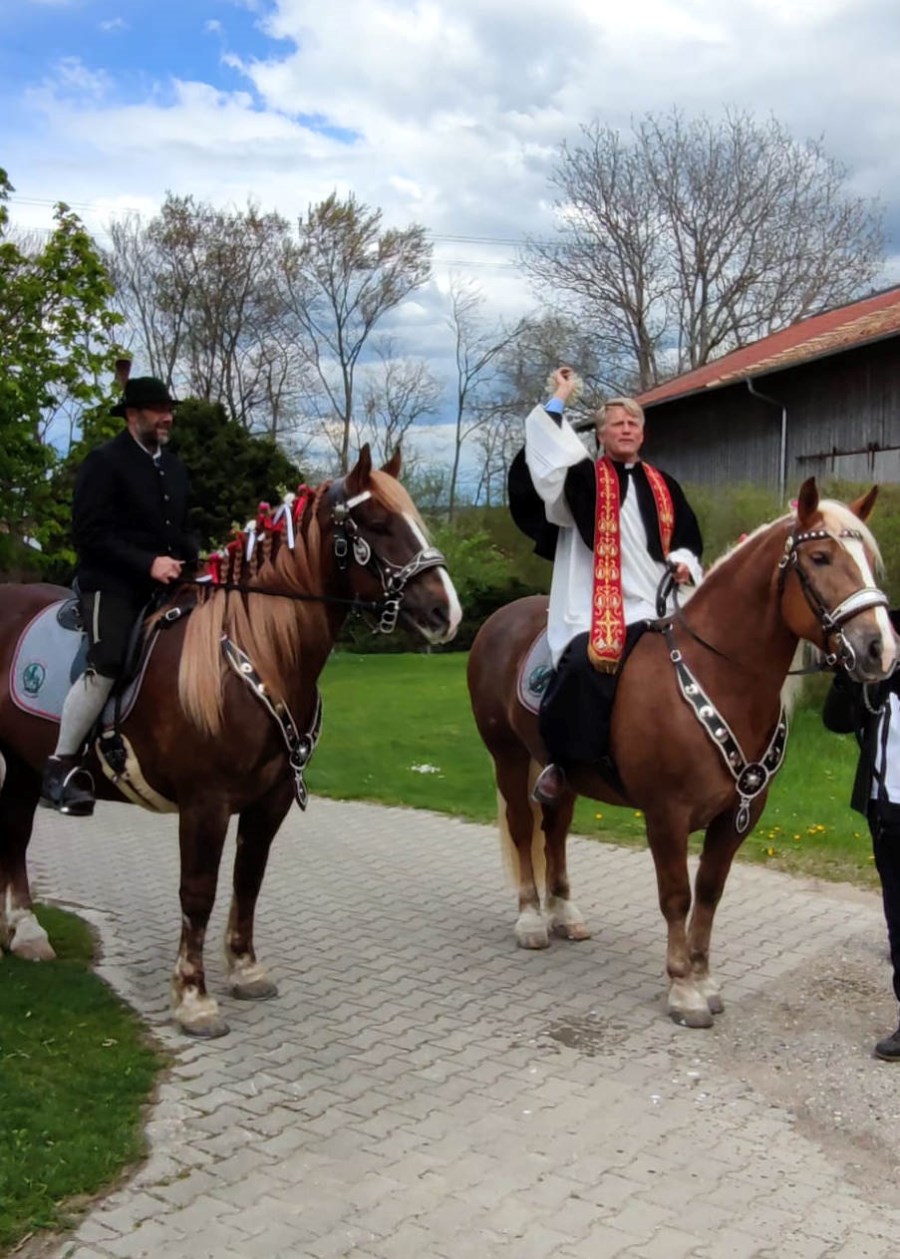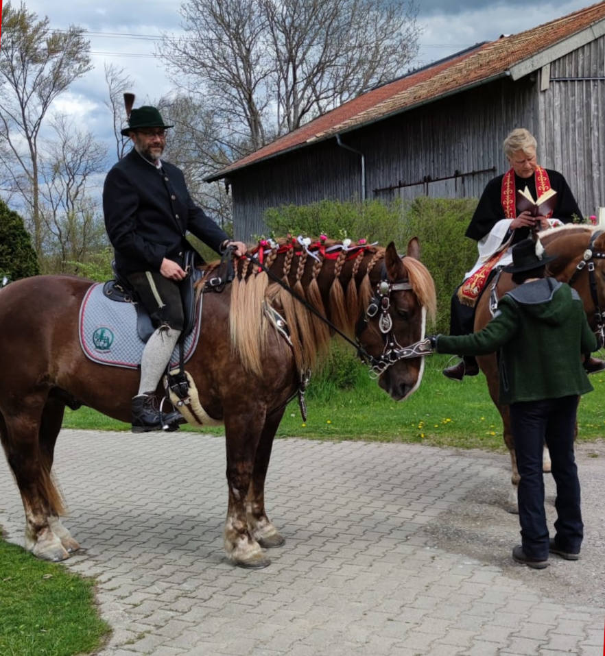 Leider musste auch für dieses Jahr der offizielle Georgiritt abgesagt werden, da es den Veranstaltern zu unsicher war, ob dieser in alter Manier stattfinden könnte. Aber der Vorstand des Georgiverein Tittmoning-Kirchheim e.V. hatte kurzfristig beschlossen, zumindest vereinsintern eine kleine "Prozession" nach Kirchheim zu unternehmen. Und Pfarrer Gumpinger freute sich, die Pferde und ihre Reiter*innen segnen zu dürfen. Hier ein paar Eindrücke....