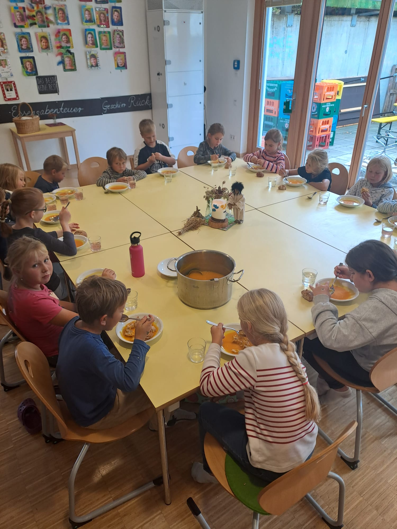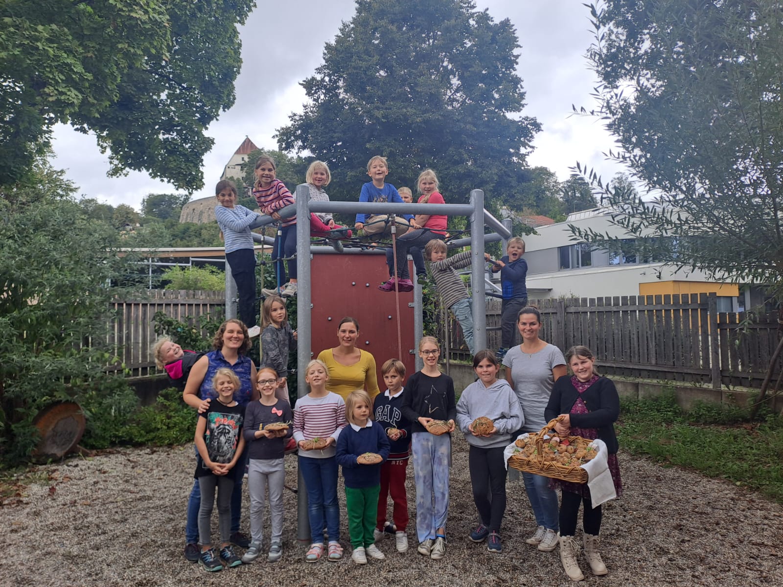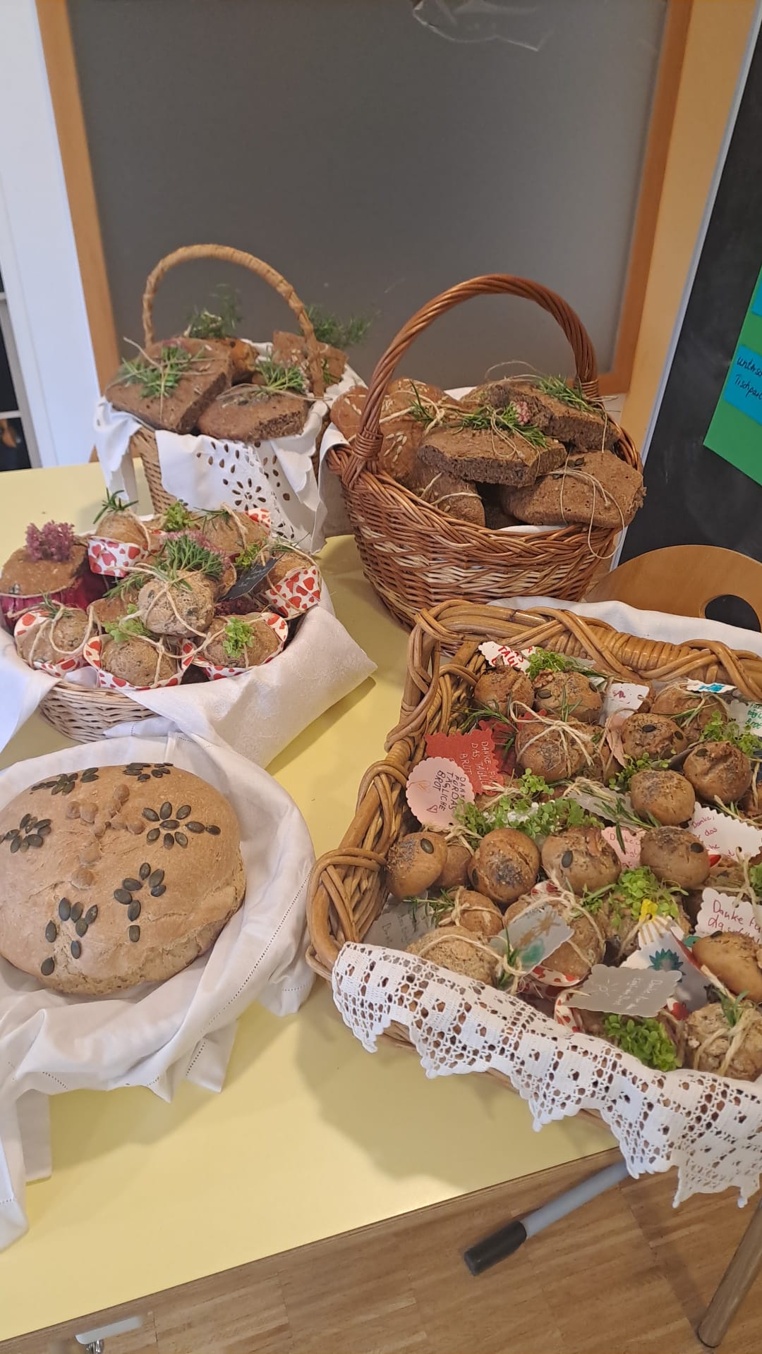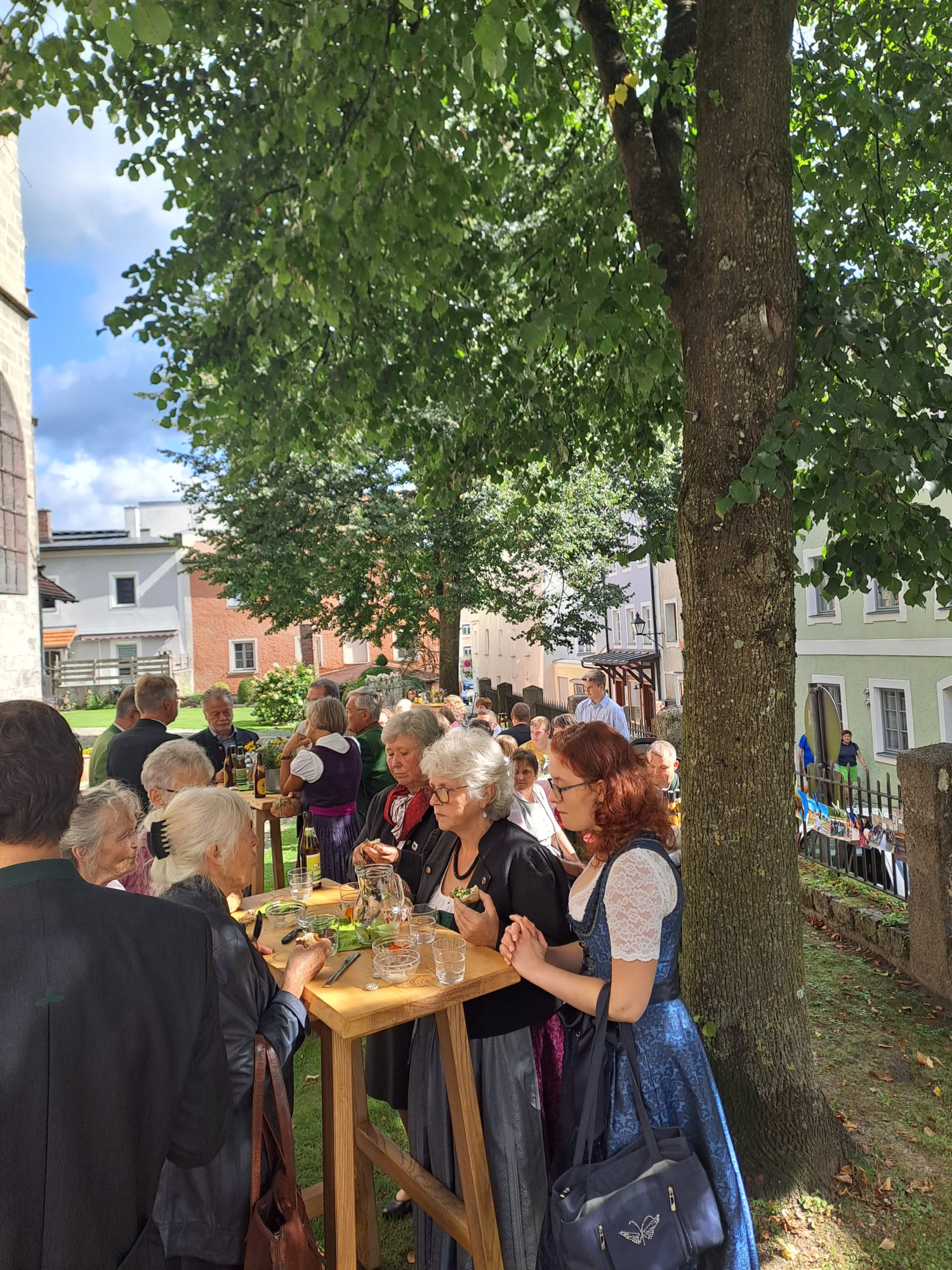 Nach dem feierlichen Schlusssegen und dem Te Deum in der Kirche wurde die von den Kindern gebackenen Brote am Kirchplatz an die Kirchenbesucher verteilt und gemeinsam in geselliger Runde mit Getränken, guten Gesprächen und schönen Begegnungen gemeinsam verzehrt.