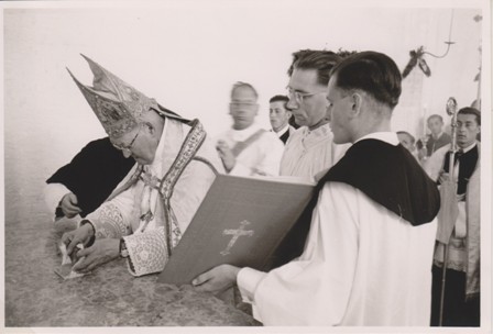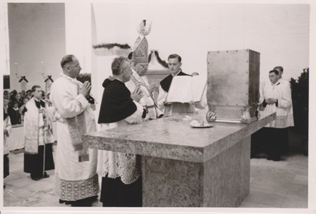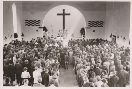 An Ostern 1955 wurde der Taufstein geweiht und damit unsere Seitenkapelle als Taufkapelle ihrer Bestimmung übergeben.