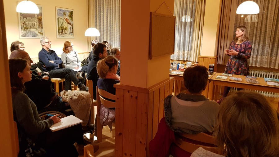 Die Besucher*innen nutzten die Gelegenheit sich untereinander und mit der Referentin rege auszutauschen. Es wurden viele Fragen gestellt und beantwortet. Am Schluss probierten alle Teilnehmer vegane "Mouse de Schocolade" und "Gemüse Quiche"