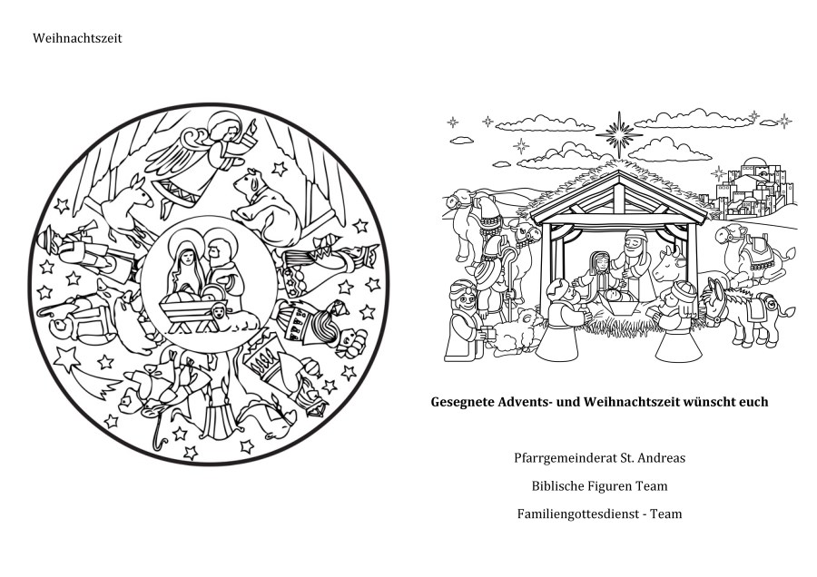 Sie geben den Eltern ihre „Geschenke“ und legen sich zu den beiden anderen Tieren – zu Ochs und Esel – neben die Krippe.