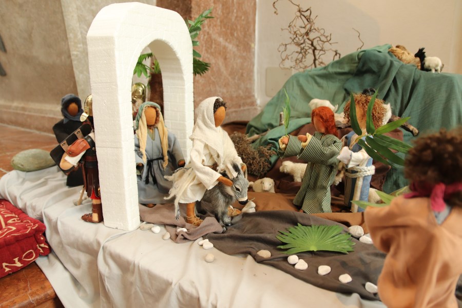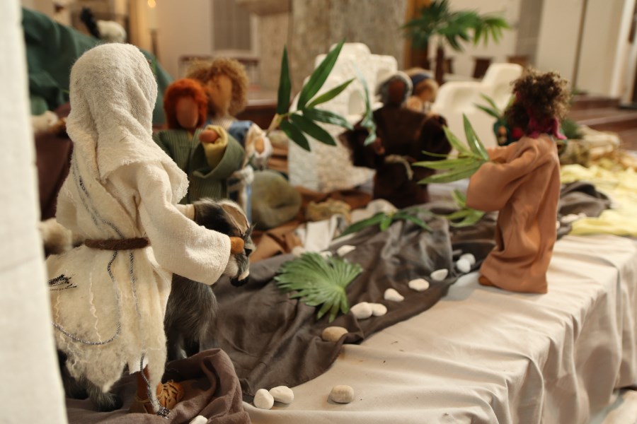 In jener Zeit ging Jesus nach Jerusalem hinauf. Und es geschah: Er kam in die Nähe von Betfage und Betanien, an den Berg, der Ölberg heißt, da schickte er zwei seiner Jünger aus und sagte: Geht in das Dorf, das vor uns liegt! Wenn ihr hineinkommt, werdet ihr dort ein Fohlen angebunden finden, auf dem noch nie ein Mensch gesessen hat. Bindet es los und bringt es her! Die Ausgesandten machten sich auf den Weg und fanden alles so, wie er es ihnen gesagt hatte. Als sie das Fohlen losbanden, sagten die Leute, denen es gehörte: Warum bindet ihr das Fohlen los? Sie antworteten: Weil der Herr es braucht. Dann führten sie es zu Jesus, legten ihre Kleider auf das Fohlen und halfen Jesus hinauf. Während er dahinritt, breiteten die Jünger ihre Kleider auf dem Weg aus. Als er sich schon dem Abhang des Ölbergs näherte, begann die Schar der Jünger freudig und mit lauter Stimme Gott zu loben wegen all der Machttaten, die sie gesehen hatten. Sie riefen: Gesegnet sei der König, der kommt im Namen des Herrn. Im Himmel Friede und Ehre in der Höhe! Da riefen ihm einige Pharisäer aus der Menge zu: Meister, weise deine Jünger zurecht! Er erwiderte: Ich sage euch: Wenn sie schweigen, werden die Steine schreien.