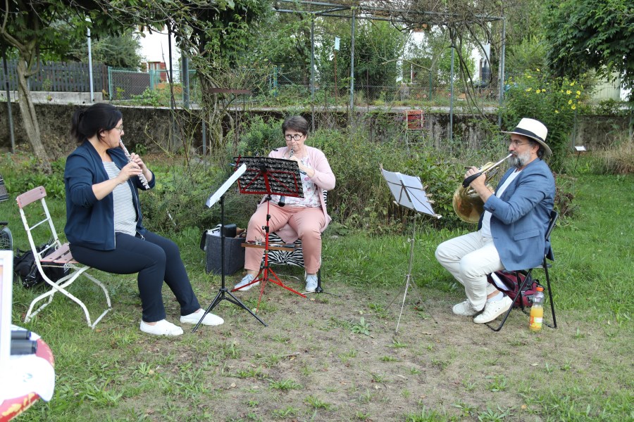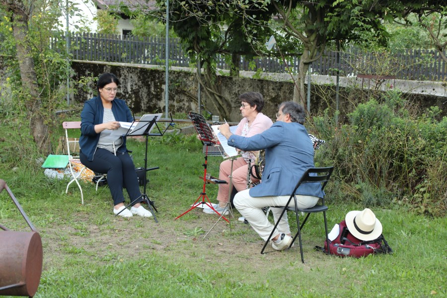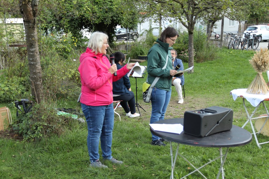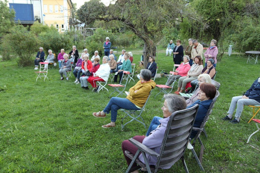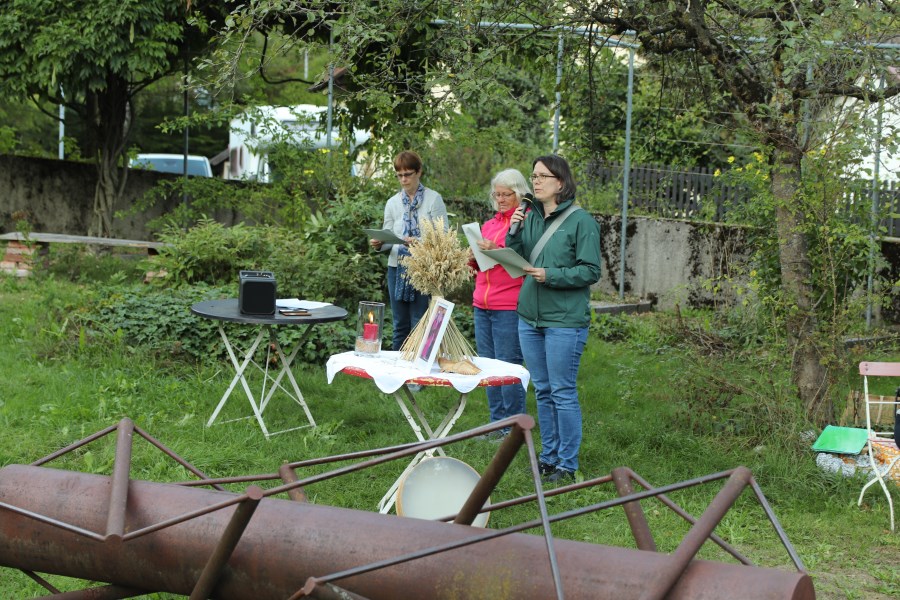 Der Rosengarten bietet für viele Veranstaltungen ein schönes Ambiente. Zuletzt nutzte ihn der Zweigverein des katholischen Frauenbundes, um ein Abendlob zu feiern. In den Mittelpunkt stellten die Organisatorinnen die Bibelfigur Ruth. Auf einem Tisch standen ein Bild von Noomi und ihrer Schwiegertochter Ruth, ein Krug voller Weizenähren und eine Kerze. Franziska Krüger umriss die Lebensgeschichte von Ruth. Diese lebte dem alten Testament nach in einer Zeit der Hungersnot, da die Menschen ihre Heimat verlassen mussten. Ruth musste sich auf ein fremdes Land mit seiner unbekannten Kultur, Sprache, Religion und Lebensweise einlassen. Helga Roch fragte die vielen Anwesenden: "Wie geht es uns bei Entscheidungen und Lebensumbrüchen?" Ihr Fazit lautete, dass Ruth ein gutes Vorbild sei, man auf Gott vertrauen könne, da er die Menschen nach Gesinnung, Solidarität und Glauben beurteile und nicht nach der Herkunft. Musikalisch umrahmt wurde die halbe Stunde von Claudia Judex (Oboe), Jakob Wurm (Horn) und Caro Illguth-Wurm (Querflöte).