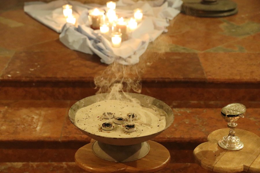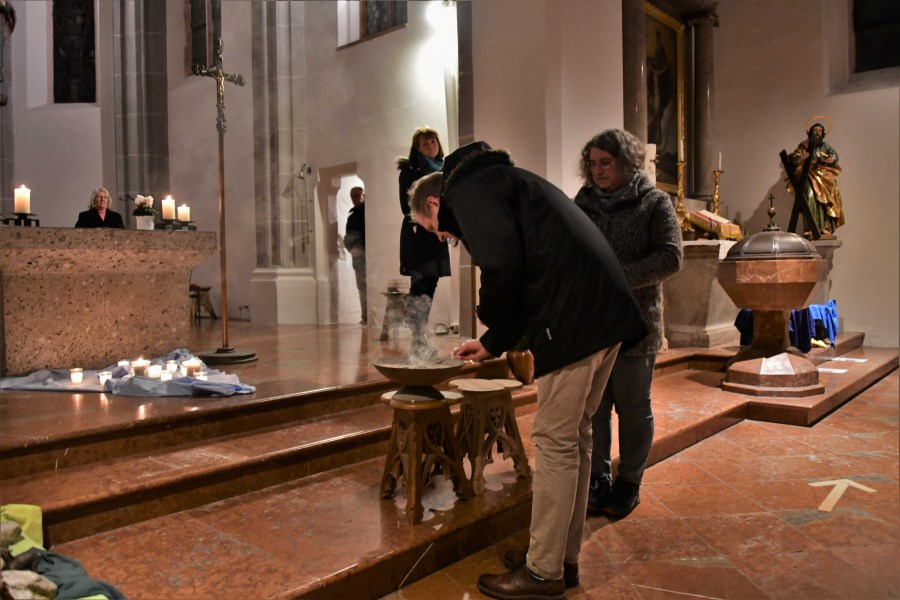 Schon im vergangenen Jahr wurden viele Kerzenreste gesammelt, die dann zu neuen Kerzen verarbeitet wurden. Doch nicht nur diese wurden am Abend angezündet, auch Weihrauch, stellvertretend für die vielen Bitten und Anliegen der Mitglieder des Ortsvereins des Katholischen Frauenbunds Trostbergs und der anwesenden Gläubigen, stieg auf. Zu den Klängen der Musik von Caro Illguth und Christl Schmid konnte jeder Besucher Weihrauch auf die glühende Kohle legen und damit seine persönlichen Anliegen zum Himmel schicken.