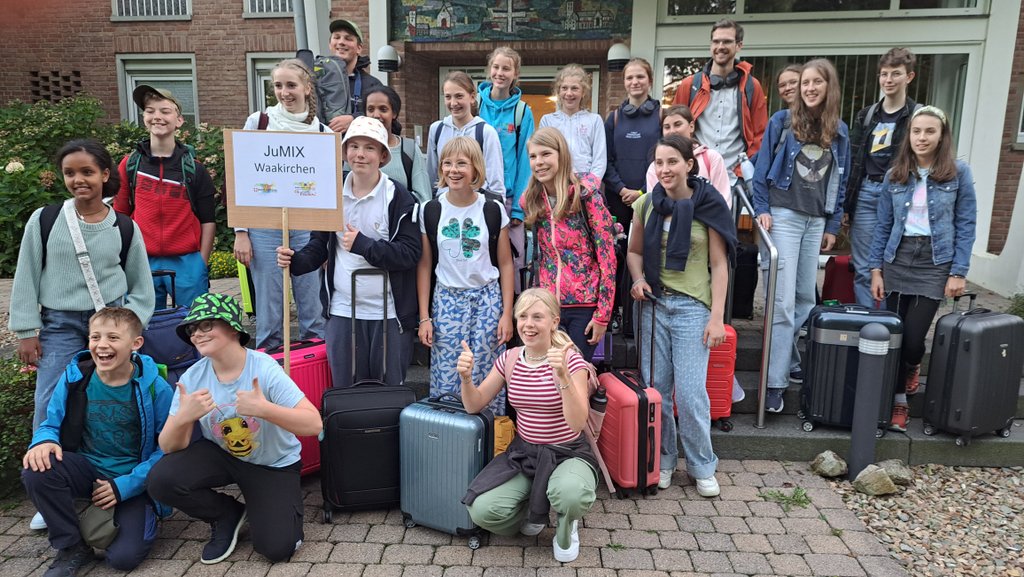 Chorleiterin Angela Schütz machte sich mit 22 Sängern vom JuMIX auf nach Münster in Westfalen, um dabei zu sein beim diesjährigen nationalen Festival der gemischtstimmigen Jugendchöre der