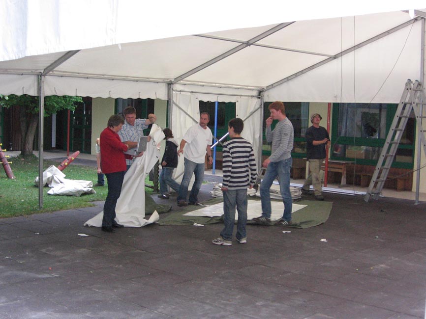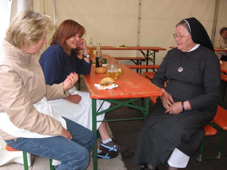 Wir hatten richtig Lust, das Fest vorzubereiten und zwar erstmals im Innenhof des Josefsheims. Grund: Das bisherige Gebäude des Kindergartens konnte wegen verschiedener Baumaßnahmen nicht genutzt werden. Der Pfarrgemeinderat ging auf „Herbergsuche“ und klopfte im Josefsheim an. Dort waren die Pfarrgäste herzlich willkommen. Es wurde ein prächtiges Fest im liebevoll vorbereiteten Innenhof.