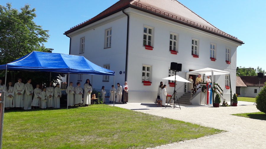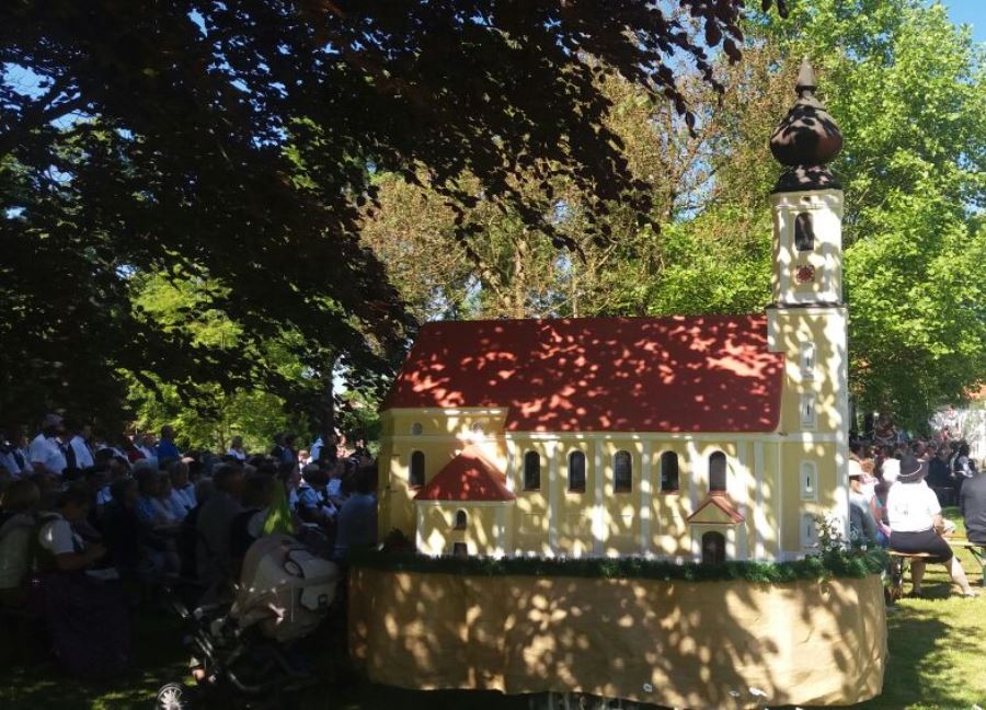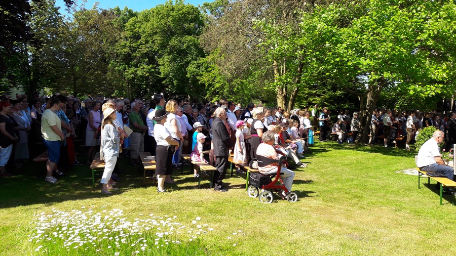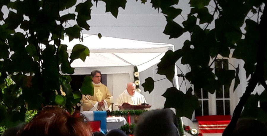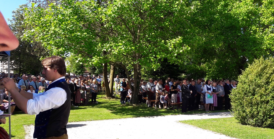 Gemeinsam mit Pfarrer Gregor Bartkowski, dem Seelsorgeteam, den Gemeindevertretern und Vereinen mit ihren Fahnenabordnungen, vielen Ehrengästen und 500 Gläubigen aus dem ganzen Pfarrverband feierte Weihbischof Dr. Bernhard Haßlberger im schön geschmückten und herrlich schattigen Langenpreisinger Pfarrgarten einen beeindruckenden Festgottesdienst, der noch lange in Erinnerung bleiben wird. In seiner Predigt ging er besonders auf den Zusammenhalt in der Gemeinde ein und wünschte den Langenpreisingern auch weiterhin ein gutes Miteinander.