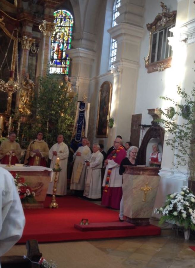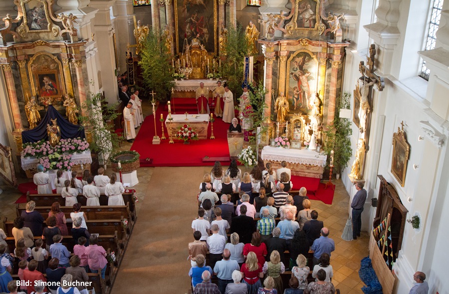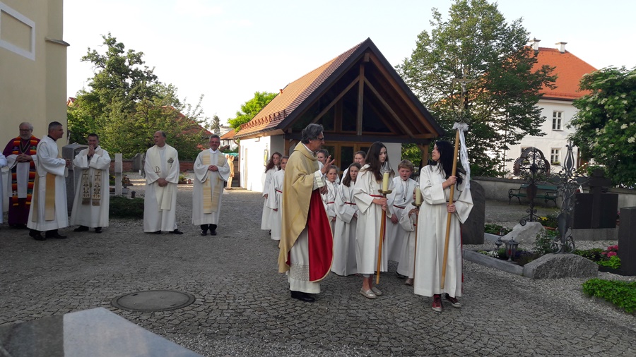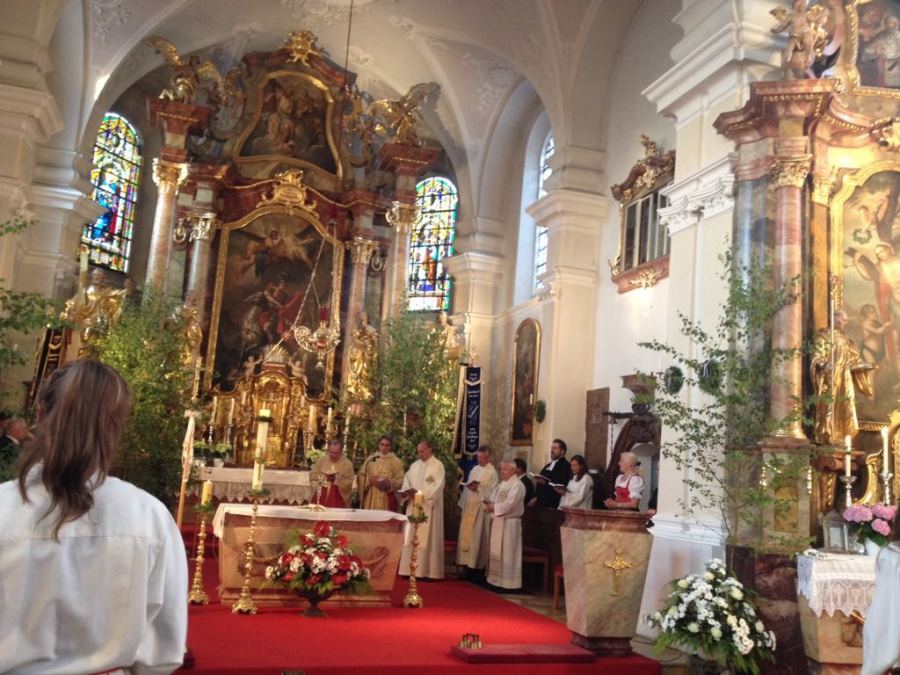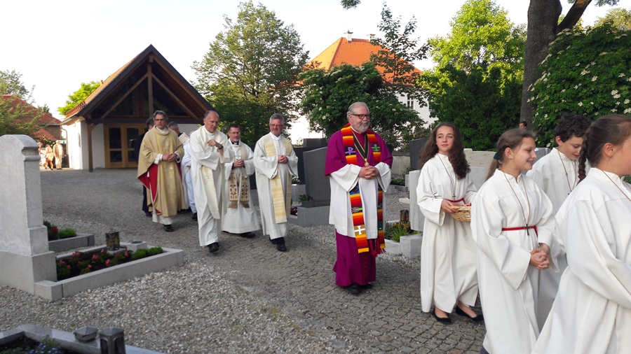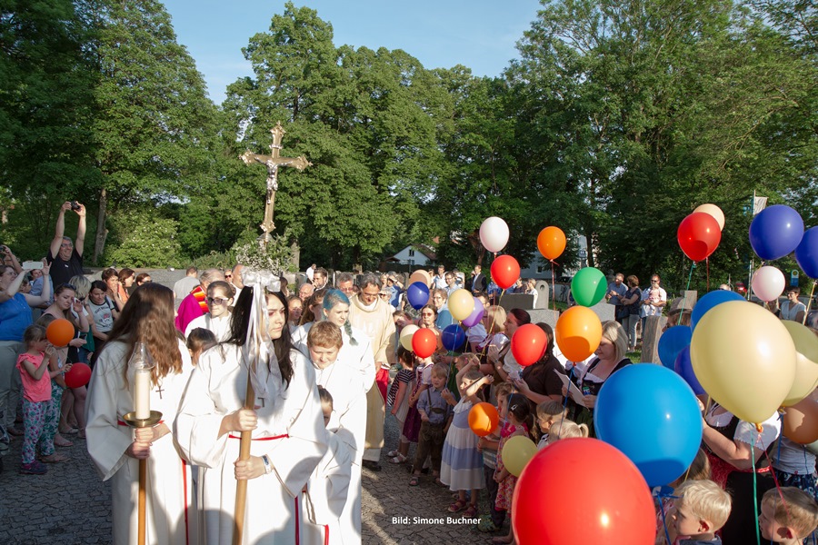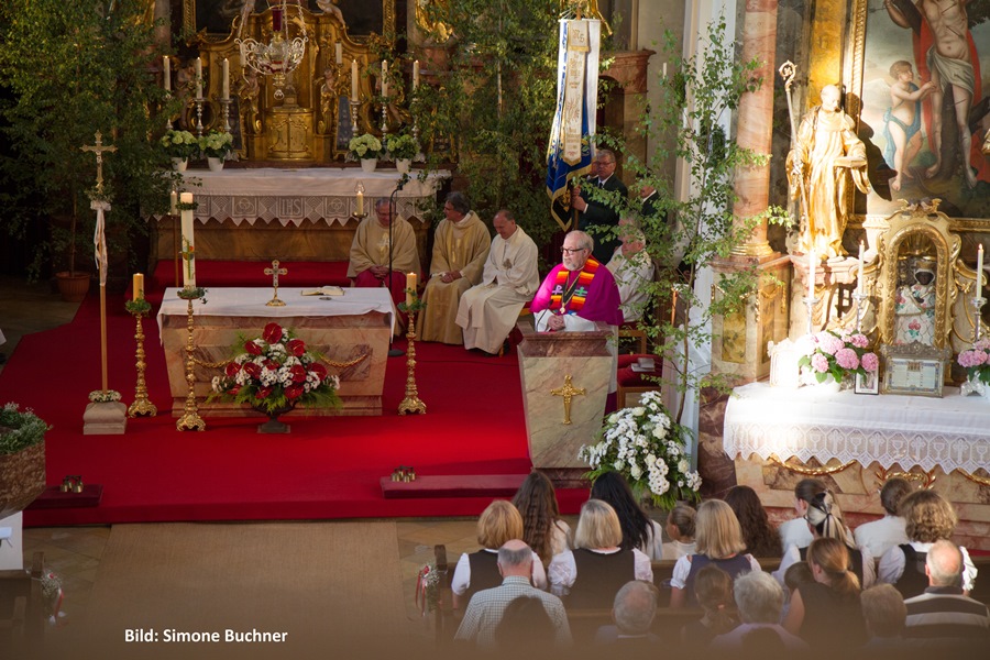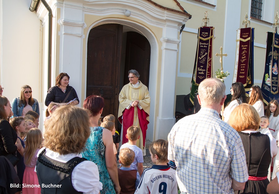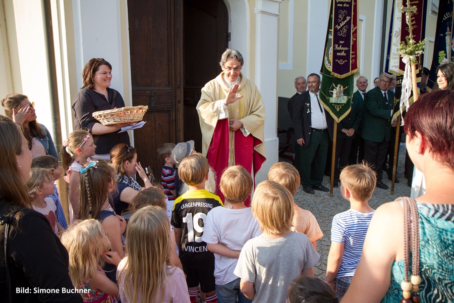 Es wurde daraus ein wunderbarer Gottesdienst voll Freude und herzlicher Dankbarkeit für sein bisheriges Wirken. Die Kindergartenkinder aus Wartenberg und Langenpreising ließen vor der Kirche für ihn Luftballons steigen und beschenkten ihn mit einem „I mog di“-Kuchenherz, alle Ministranten und viele Priesterkollegen, angeführt von Domkapitular Föckersperger, der auch die Festansprache hielt, begleiteten ihn in die festlich geschmückte Kirche, der Chor unter der Leitung von Christian Rott stimmte ihm zu Ehren "Gaude Mater Polonia" (Freue dich Mutter Polen) an und die Gläubigen aus dem ganzen Pfarrverband sangen zum Dank mit ihm das „Großer Gott wir loben dich“. Sehr gerührt bedankte sich Pfarrer Bartkowski bei allen, die bisher mit ihm unterwegs waren, für die vielen Zeichen der Sympathie und Ermutigung. Sein Blick sei aber nach vorne gerichtet und so werde er auch weiterhin mit ganzem Herzen Seelsorger und Priester sein.