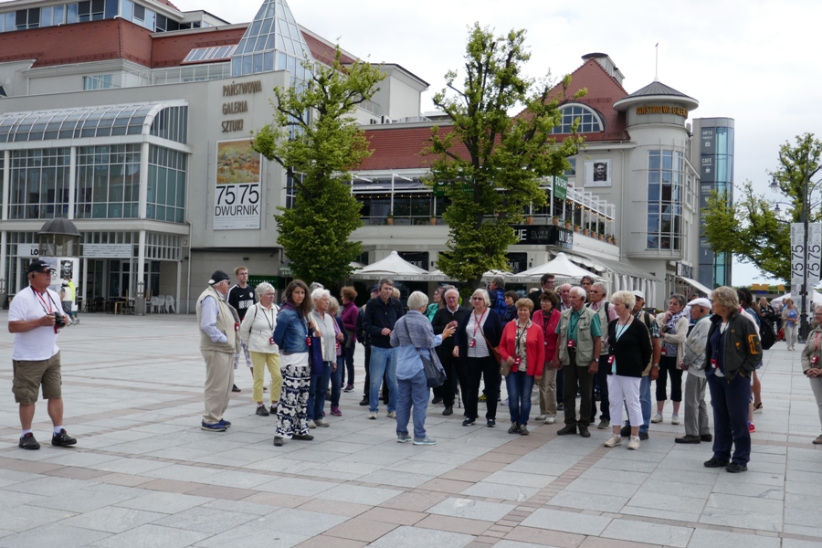 Dann fuhr man in die Stadt Sopot, einem ehemaligen Fischerdorf, das zu einem bekannten Ostseebadekurort aufstieg, weil ein Herrn Haffner der Bevölkerung das Baden schmackhaft machte. Dort konnte man auf dem 500 m langen Holzsteg flanieren, den Hafen besichtigen und in der Fußgängerzone einen windschiefen Bau, das „Krumme Häuschen“ bewundern. Sopot brachte auch einen bekannten Schauspieler hervor, Klaus Kinski, der aber nicht bei Allen Anklang findet.