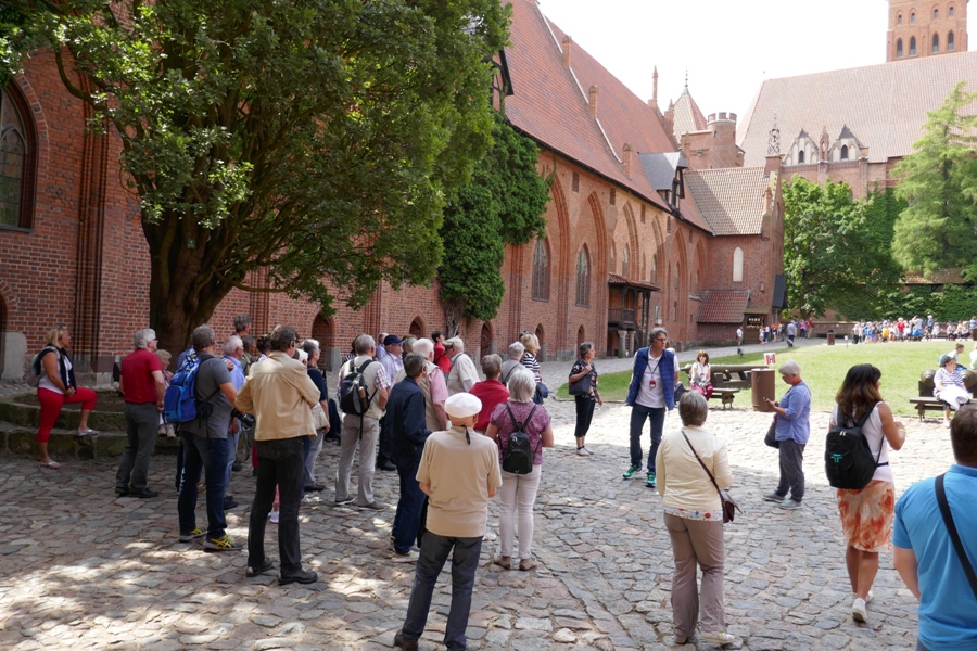 Von weitem grüßte schon die beeindruckende Marienburg, eine Machtzentrale der Deutschen Ordensritter, mit einer 8 m hohen Marienmosaikstatue an der Frontseite der Kirche. Die Backsteinburg steht auf 21 ha Grund, war der Sitz von 18 Hochmeistern des Deutschen Ordens, wovon auch 11 dort begraben sind. 1945 wurde sie schwer beschädigt aber sorgfältig rekonstruiert und stellt mit ihren Räumlichkeiten und Anlagen ein bemerkenswertes Zeitzeugnis dar. Der Burgführer verstand es die Blütezeit dieser Burg wieder lebendig zu machen und leitete mit Witz und Verstand durch die Anlage.