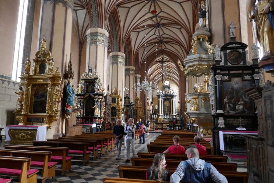 In der Stadt Elbing, die eine sehr wechselvolle Geschichte hinter sich hat, bestaunte man dann die Nikolaikirche mit ihrem fast 100 m hohen Kirchturm, den wunderschönen Altären und einem Taufbecken aus dem 14. Jahrhundert. Die Stadt wurde im zweiten Weltkrieg bis auf die Kirche fast völlig zerstört und erst in den 90er Jahren wieder teilweise aufgebaut, was im Elbinger Museum anhand von Filmen und Ausstellungstücken eindrücklich demonstriert wird.