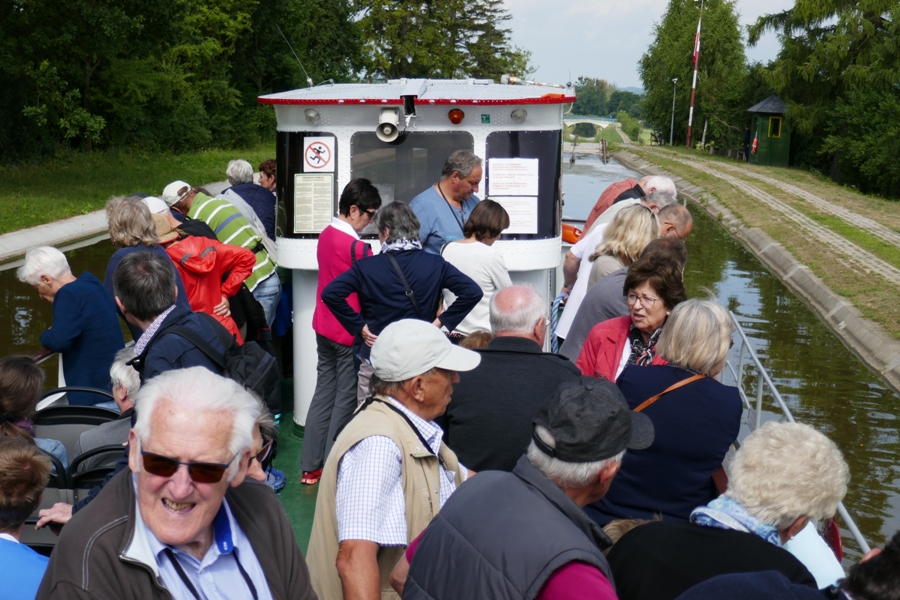 Eine außergewöhnliche Schifffahrt erwartete die Gruppe am nächsten Tag. Auf dem Oberlandkanal, der gebaut wurde um Güter vom Landesinneren an die Ostsee zu bringen, überwindet man fast 100 Höhenmeter nur mit Hilfe von Wasserkraft. Die Schiffe werden dabei auf Rollwägen geleitet und dann an Seilen nach oben gezogen. Eine geniale Lösung und wahre Meisterleistung, die auch nach 150 Jahren noch funktioniert. Auf der 70 km langen Fahrt zwischen Osterode und Elbing kommt man auch durch Naturschutzgebiete, wie dem Drausensee, der zu 80 % von Seerosen überwuchert ist und auf dem Vögel aller Arten zu bewundern sind. Diese besondere Art der Fortbewegung und die unberührte Natur beeindruckten ganz besonders.