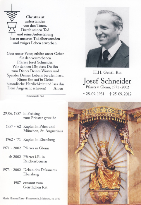 war von 1971 bis 2002 Pfarrer in Glonn und Dekan von Ebersberg.