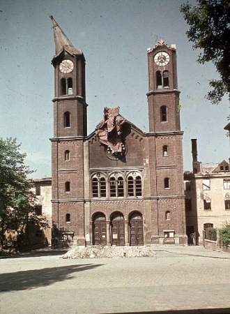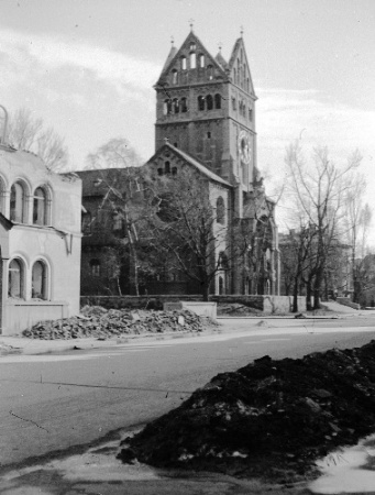 (Abbildung rechts: die neoromanische Fassade der Klosterkirche 1944)