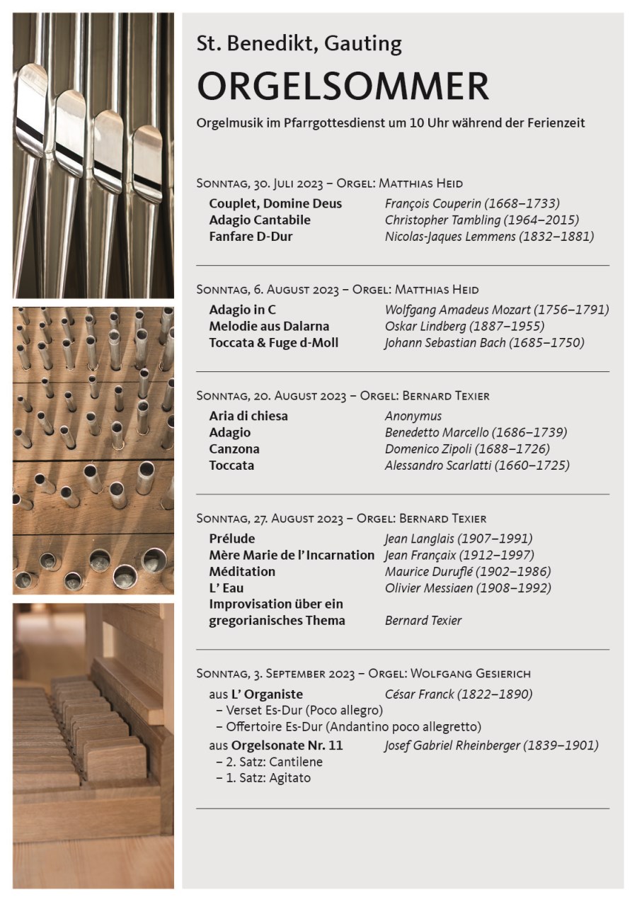 Die Pfarrgottesdienste um 10 Uhr werden während der Ferienzeit mit besonderer Orgelmusik gestaltet.