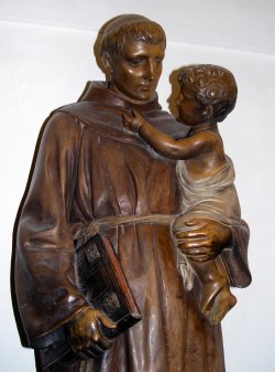 von Padua OFM, geb. 1195 in Lissabon (Taufname Fernandez), war zuerst Augustiner-Chorherr, trat aber 1220 bei den Minderbrüdern in Coimbra ein und nahm den Namen des Klosterpatrons Antonius an. Er wirkte als gottbegnadeter Prediger in Oberitalien und Südfrankreich.