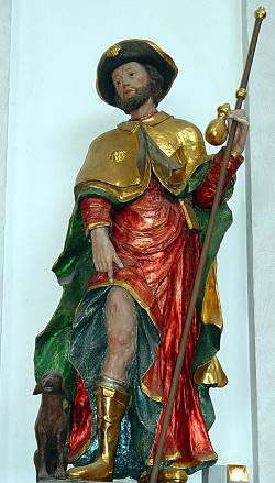 wird verehrt als Patron gegen Pest und Seuchen. Zuverlässige Nachrichten über sein Leben fehlen. Nach der Legende des 15. Jhs. wurde er um 1295 in Montpellier geboren, verschenkte sein Vermögen an Arme, pilgerte nach Rom, pflegte dort Pestkranke, wurde 1320 auf der Rückreise in Piacenza selbst von der Pest befallen, kehrt nach wunderbarer Heilung 1322 unerkannt nach Montpellier zurück, wurde dort als Spion eingekerkert und starb im Gefängnis 1327. – Nach Übertragung der Reliquien 1485 von Montpellier nach Venedig verbreitete sich schnell seine Verehrung.