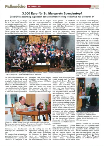 Freitag, 11. Juni 2010 "Nacht der Musik" Benefizkonzert zugunsten der Kirchenrenovierung St. Margaret