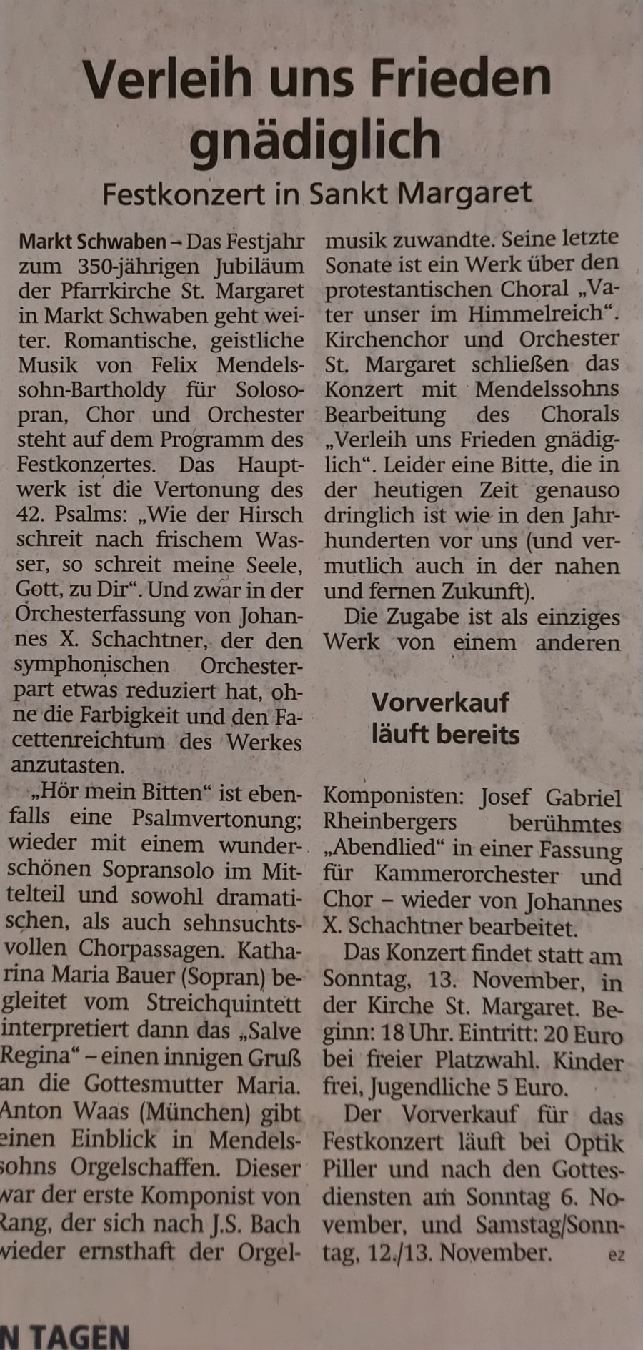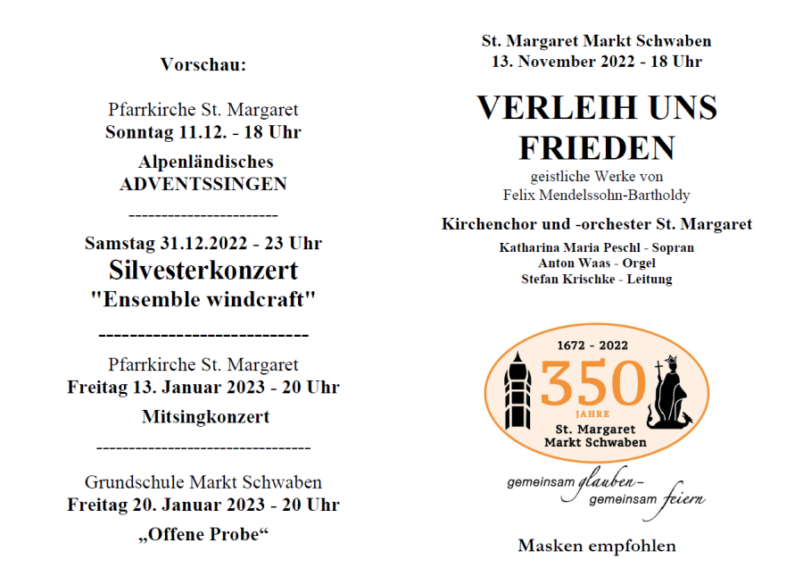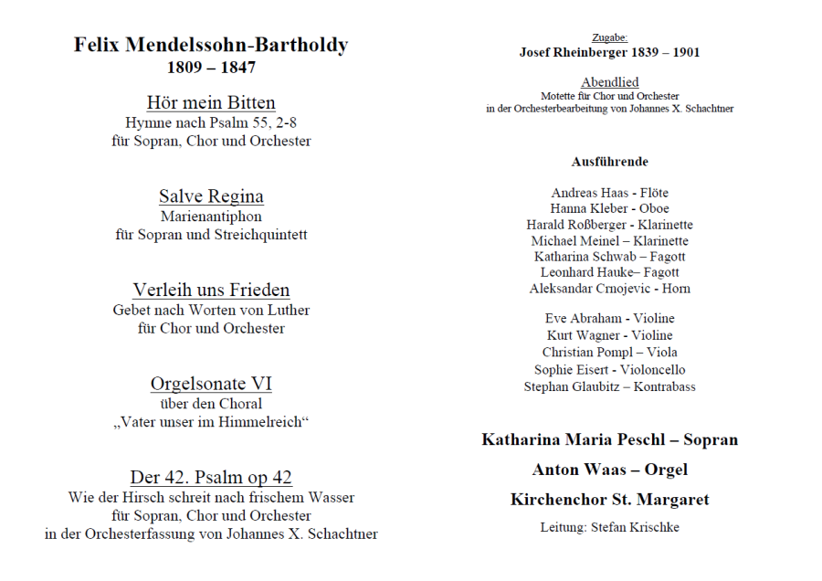 Konzert Mendelssohn 13. Nov. 2022 um 18 Uhr Chor + Orchester St. Margaret
