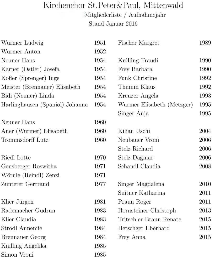 Von 1945 bis 1983 übernahm Ludwig Wurmer die Leitung des Kirchenchors. Er führte vor allem die großartigen Messvertonungen von Haydn, Mozart, Schubert, Weber und Gounod in Mittenwald ein.