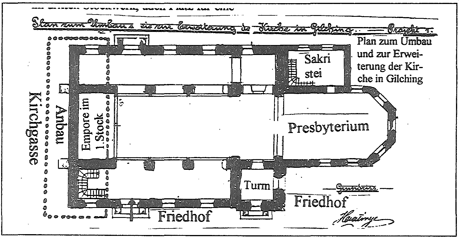 Plan zum Umbau und zur Erweiterung der Kirche in Gilching