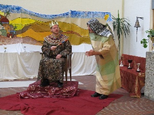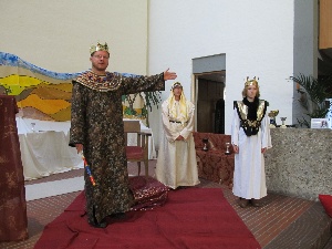 Einen ganzen Tag verbrachten 76 Kinder in Kirche, Pfarrheim und Schule von St. Georg mit dieser biblischen Geschichte. Sie wurde abschnittsweise dargestellt und erzählt unter der Regie von Gabi Schöpf und Maria Luger. In Kleingruppen vertieften die jugendlichen und erwachsenen Gruppenleiter und -leiterinnen das Geschehen mit den Kindern und stellten spielerisch den Bezug zum eigenen Leben her. Neid, Hass und Versöhnung sind schließlich Themen, die alle persönlich betreffen. Jedes Kind durfte unter anderem einen Lederbeutel basteln. Das Leder dafür wurde dankenswerterweise von der Gerberei Scherer kostenlos zur Verfügung gestellt. Hinein kamen goldene Taler, auf die jedes Kind Talente schrieb, die ihm in einer misslichen Lage nützlich sind. Das Mittagsmahl und ein grandioses Versöhnungs-Festessen wurde von vier Frauen liebevoll bereitet. Das Buffet war in Windeseile von den Kindern begeistert abgeräumt. Höhepunkt war der Gottesdienst am Abend, zu dem auch die Eltern der Kinder kamen. Die Biblische Geschichte wurde unter Mitwirkung aller Kinder gespielt. Während des Tages hatten sie einen Beitrag dazu vorbereitet. Sie überreichten den selbstbemalten Mantel, spielten die Träume des Josef oder die Kaufleute, fächerten dem Pharao mit ihren gebastelten Palmwedeln frische Luft zu, überreichten feierlich die Halskette für Josef oder erstellten die orientalische Deko fürs Festmahl und die Freundschaftsbänder für alle Kinder. Die Kinderchöre von Mariä Himmelfahrt und Willing hatten schon seit September mit ihren Leitern Konrad Liebscher und Sylvia und Franz Keml die passenden Lieder von Peter Janssens und Rolf Krenzer einstudiert und übernahmen die musikalische Gestaltung während des ganzen Tages und beim Gottesdienst am Abend. Viele Jugendliche und Erwachsene hatten, auch im Hintergrund, mitgewirkt, so konnte es für die Kinder ein erlebnisreicher und schöner Tag werden.