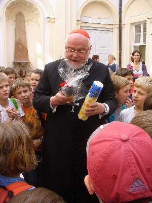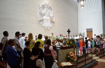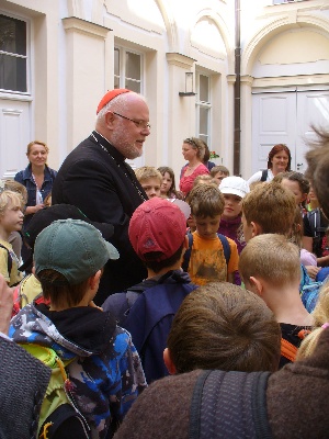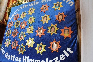 Unsere diesjährigen sieben Feiern der Erstkommunion in der Stadtkirche BA standen alle unter dem Thema: "Leuchte wie ein Stern an Gottes Himmelszelt!" Gabriele von Reitzenstein führte mit den Kommunionmüttern etwa 110 Kinder im April und Mai zum Tisch des Herrn. Der abschließende Ausflug der Erstkommunikanten führte uns nach München. Nach dem uns Stadtführerinnen aus der Geschichte dieser Stadt erzählten und einen Rundgang durch die Altstadt anführten, waren wir abschließend zu Gast bei unserem Bischof Kardinal Reinhard Marx, der sich über unseren Besuch und die Aiblinger Mitbringsel sichtlich freute!
