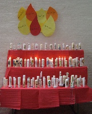 beten. In der Mitte auf dem Atar die Osterkerze, für jeden Verstorbenen einen beschrifteten Stein. Am Ende unserer Wort-Gottes-Feier wurden sie würdevoll in unserem Fluss des Lebens, der Mangfall, begraben.