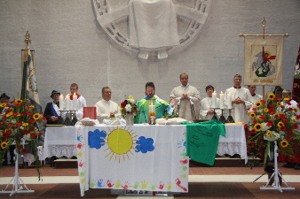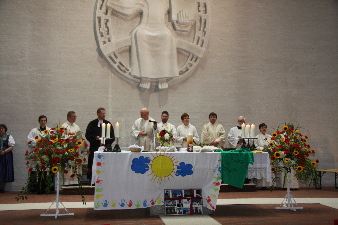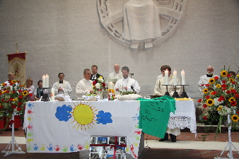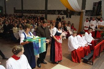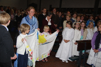 Der Kindergarten bringt ein Altartuch