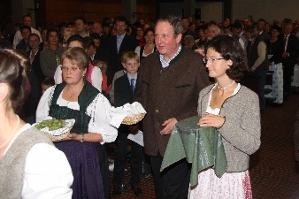 Weintrauen und Brot kommen zum Altar