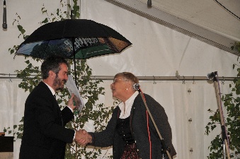 Hias als Vorstand überreicht ein Buchgeschenk