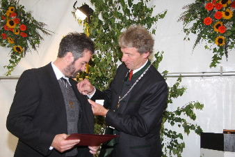 Die Goldene Ehrennadel der Sadt Aibling wird übergeben