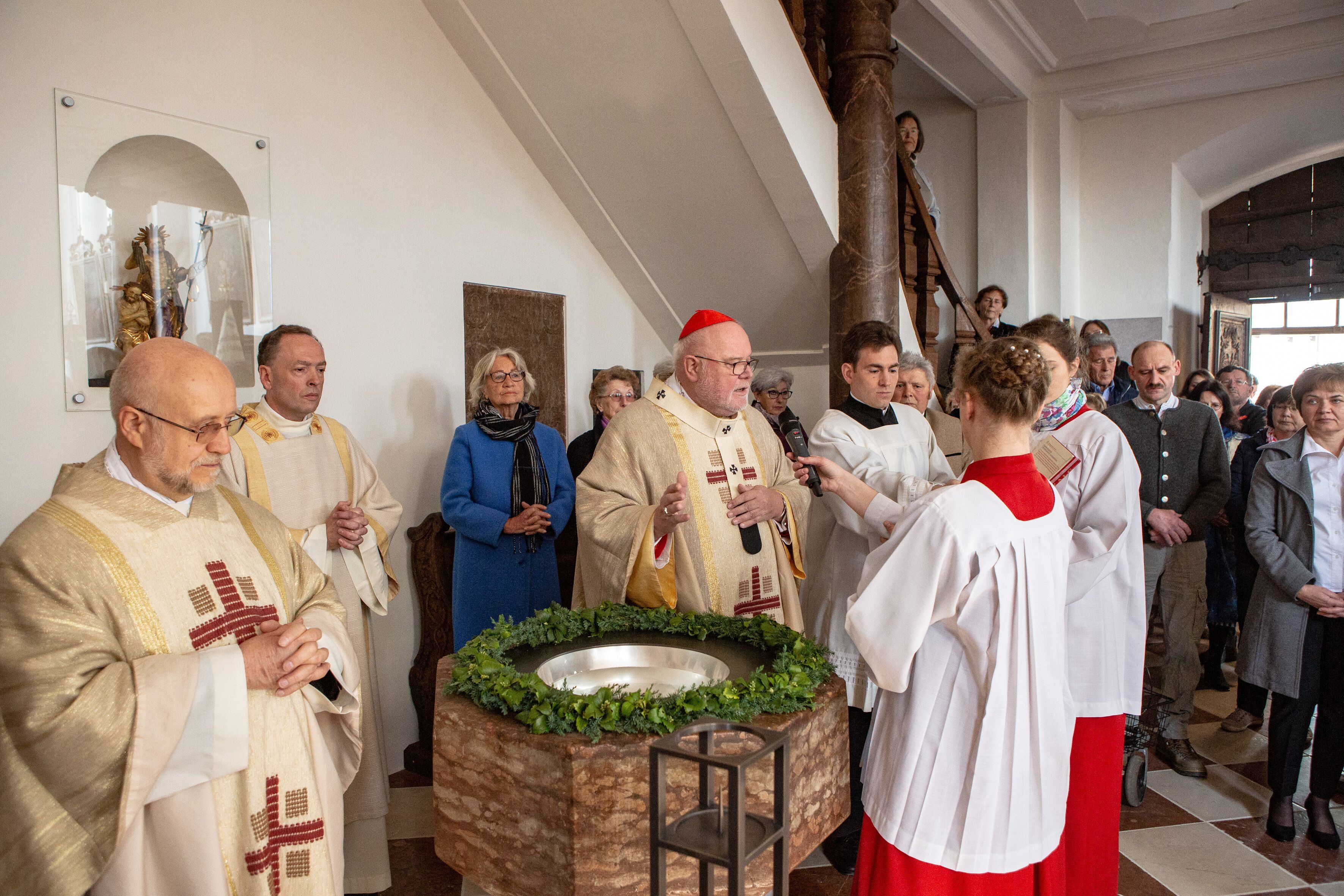 Nach mehrjährigen und umfangreichen Renovierungsarbeiten war es endlich am Samstag, den 23. März 2019 soweit. Mit einem festlichen Gottesdienst unter der Leitung von unserem Erzbischof Kardinal Reinhard Marx wurde dieses Gotteshaus wieder eröffnet. Zahlreiche Besucher hatten sich dazu eingefunden. Im Verlauf der Eucharistiefeier sind besondere Orte der Liturgie unter den Se-