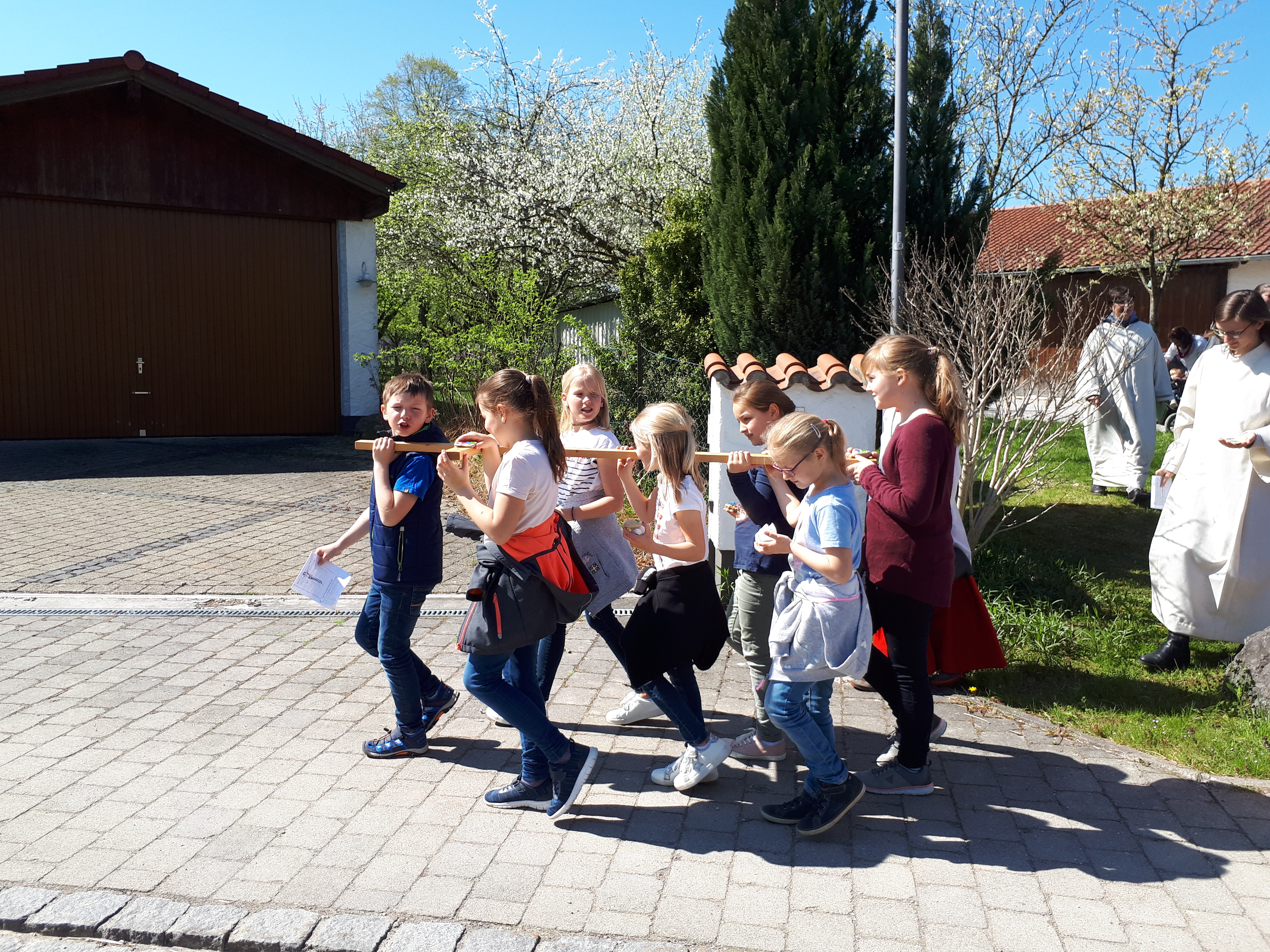 tungswegs und dann das unserer diesjährigen Feiern der Erstkommunion. Von Dezember 2018 hatten sich die Kinder mit ihren Eltern und den Tischmüttern auf dieses große Fest vorbereitet, das in allen Pfarrkirchen und einigen Filialen ge-
