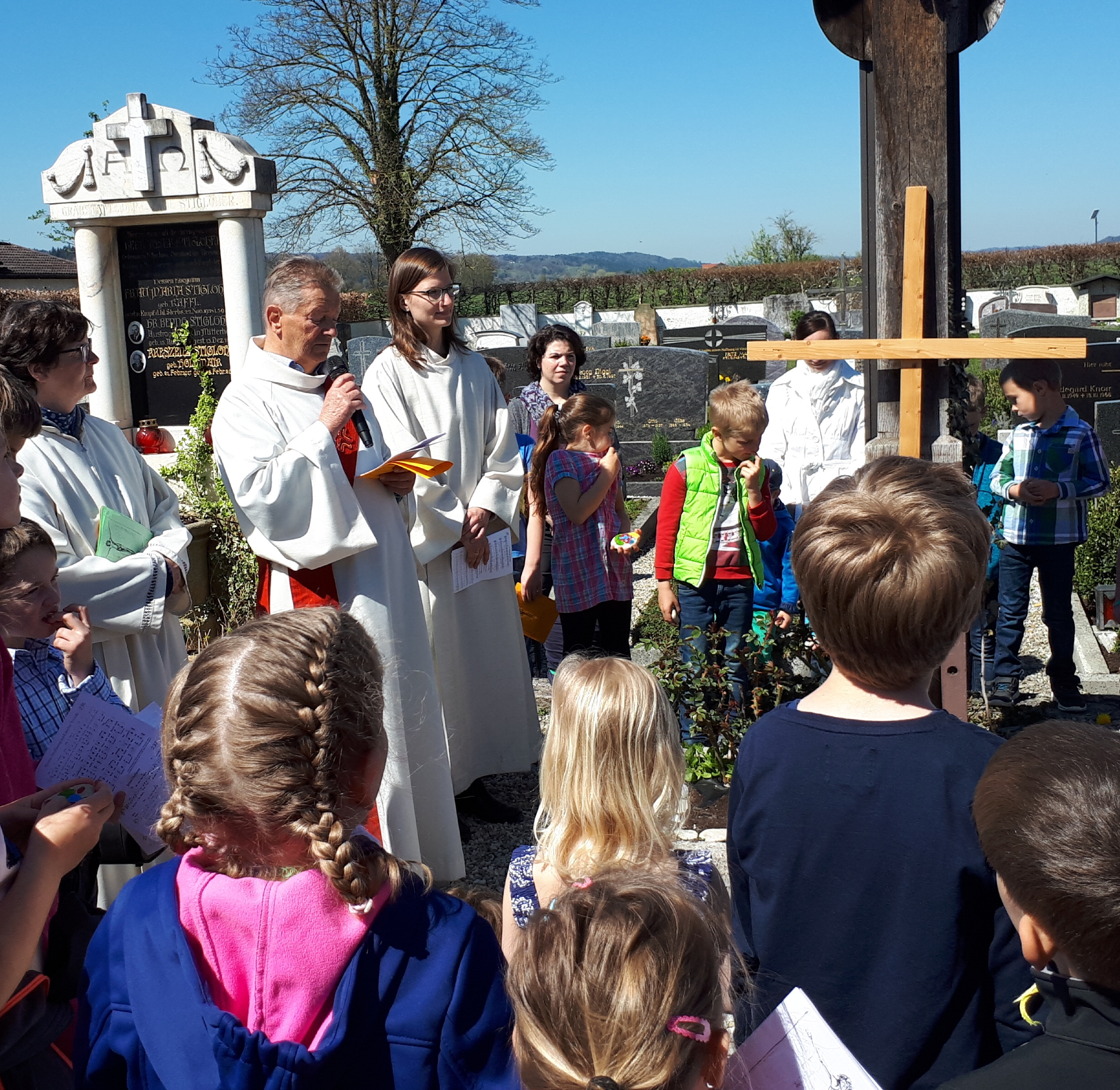 bildchen unserer Verstorbenen der letzten beiden Jahre, dazu jeweils eine Rose. Um die Osterkerze und dem Kreuz Jesu stellten wir dann in unserem persönlichen Gedenken an einen lieben Verstorbenen, dessen Name genannt wurde, viele kleine Teelichter auf. Allen aus dem Mitarbeiterteam, die mit vorbereitet und auch unser Zusammensein danach im Pfarrheim ermöglicht hatten, ein herzliches Vergelt’s Gott dafür! Ein Nachmittag, der bei allem Schweren ganz viel Mut mach-