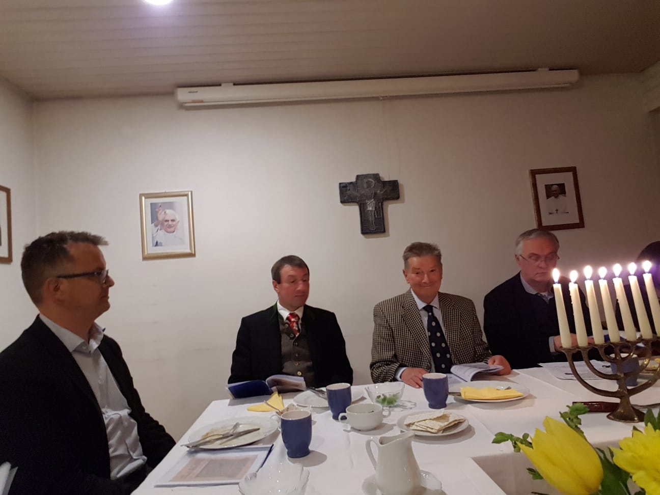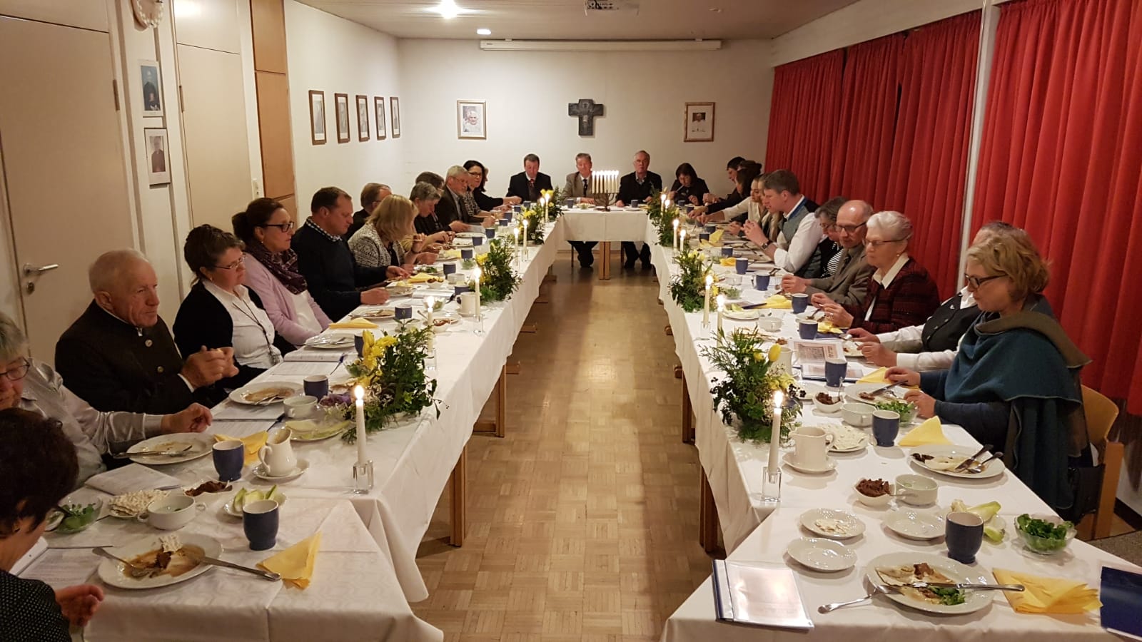 führung. Diakon Bernd Schmitz, der die Rolle des Hausvaters einnahm und zu Beginn der Feier je-dem Teilnehmer die Hände wusch und dabei das "Shalom" zusprach, bedankte sich am Ende bei allen Teilnehmern.