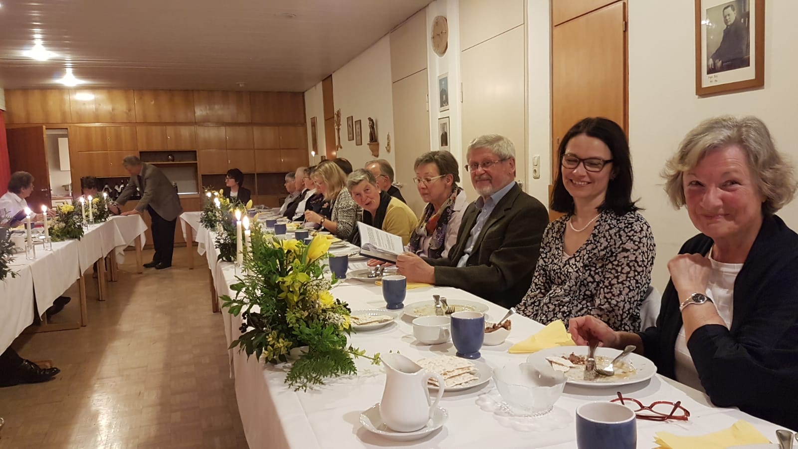 Dazwischen beteten wir aus dem Buch der Psalmen, sangen dazu passende Lieder auch in der Sprache Jesu, kosteten dazu den Rotwein. Wir danken der Schola, die unseren Gesänge entscheidend mittrugen. Wir danken den Helferinnen für die vielfältigen Dienste bei der Vorbereitung und Durch-