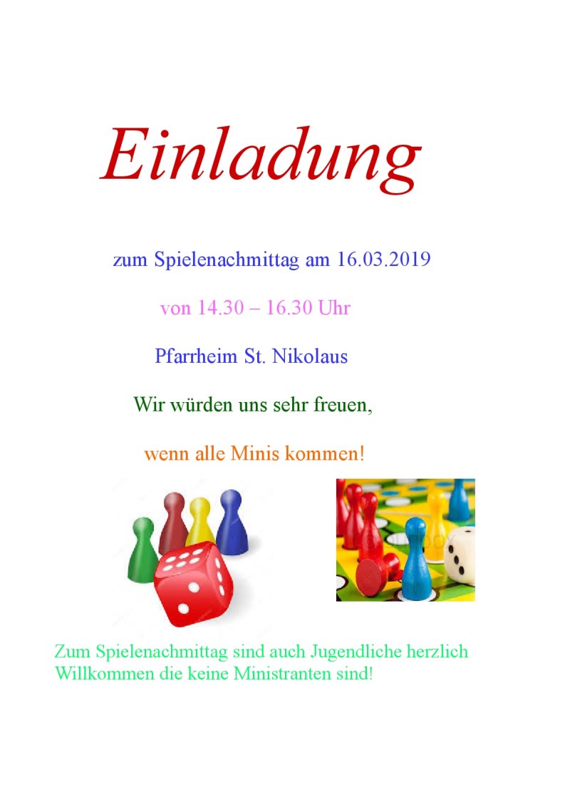 Als monatliche Aktion war bei den Ministranten im März der Spielenachmittag auf dem Plan. Nach einer kurzen Führung durch die St. Nikolaus Kirche und einem gemeinsamen Gebet fand der erste Spielenachmittag der Minis statt. Jeder durfte sein Lieblingsspiel mitbringen, von "Uno", "Monopoly" bis "Ubongo" war alles vertreten.