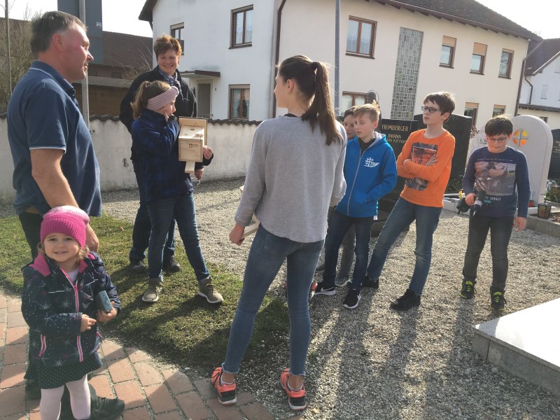Dass der Friedhof nicht nur ein Ort der Trauer und des Schmerzes ist, ist unserem neuen Kirchenpfleger Herrn Frauendienst sehr wichtig. Damit auch Leben auf dem Friedhof einziehen kann besorgte er Nistkästen.