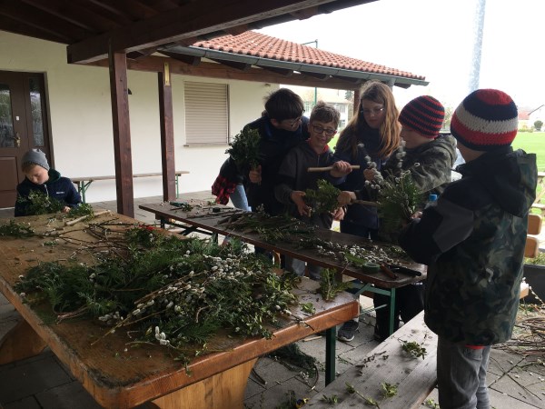 Mit großem Eifer dabei waren unsere Ministranten, die sich zum Binden der Palmbuschen trafen. Diese wurden dann am Palmsonntag vor der Kirche verkauft. Der Erlös kommt in die Minikasse für einen Ausflug nach Reit im Winkl.