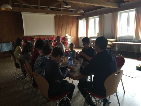 Nach der Maiandacht trafen sich die Mößlinger Minis im Pfarrheim St. Pius zur Übernachtung. Nach dem Verzehr der selbstgemachten Pizza machten es sich die Ministranten bequem und schauten gemeinsam einen Film an. An eine frühe Nachtruhe war nicht zu denken, die Übernachtung wurde für lange Gespräche und weitere Spiele genutzt.