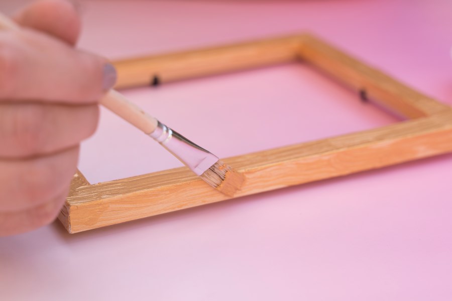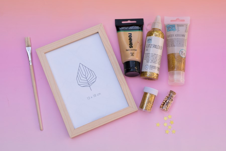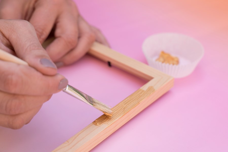 1. Der Bilderrahmen wird mit goldener Acrylfarbe bemalt.